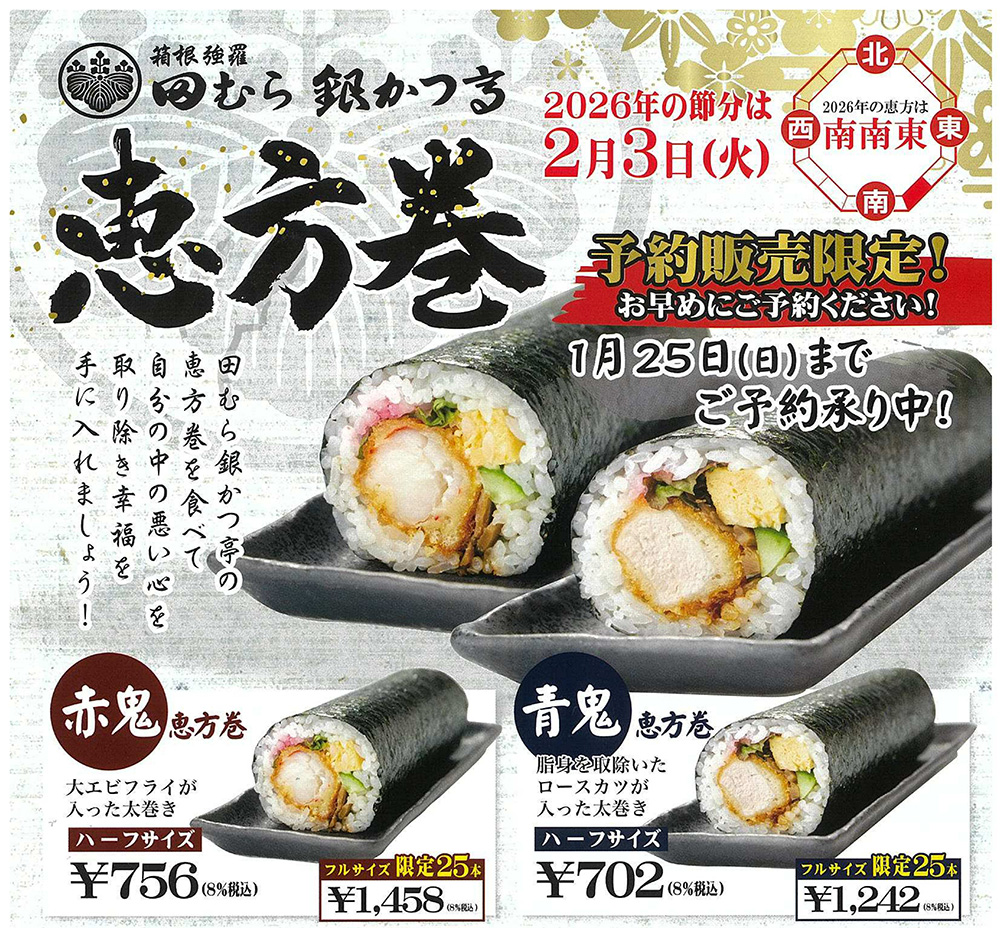 脂身を取り除いたロースカツが入った「青鬼恵方巻」の2種類をご用意。